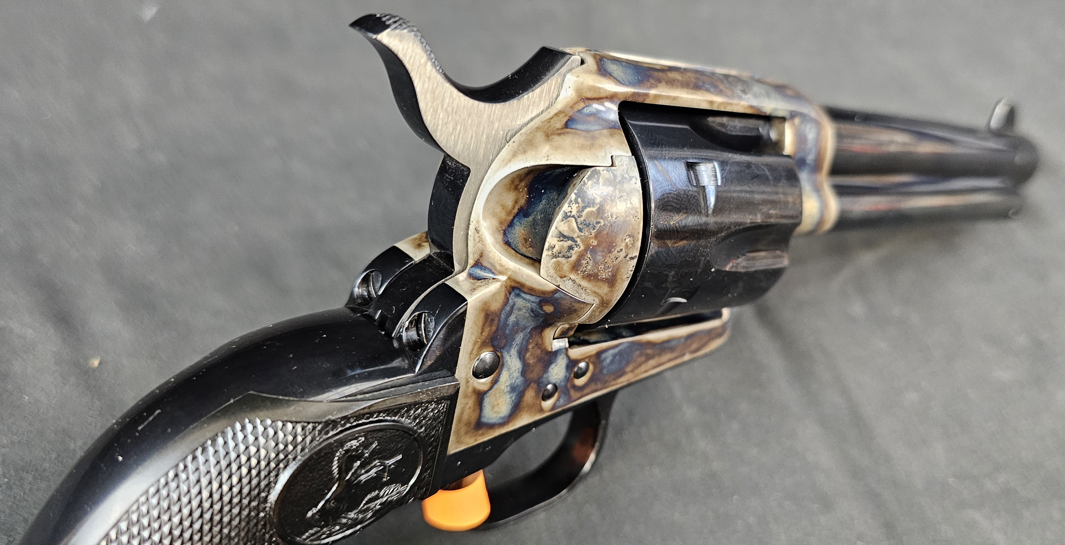 - Finish: Case-Hardened Frame with Blued Barrel and Cylinder